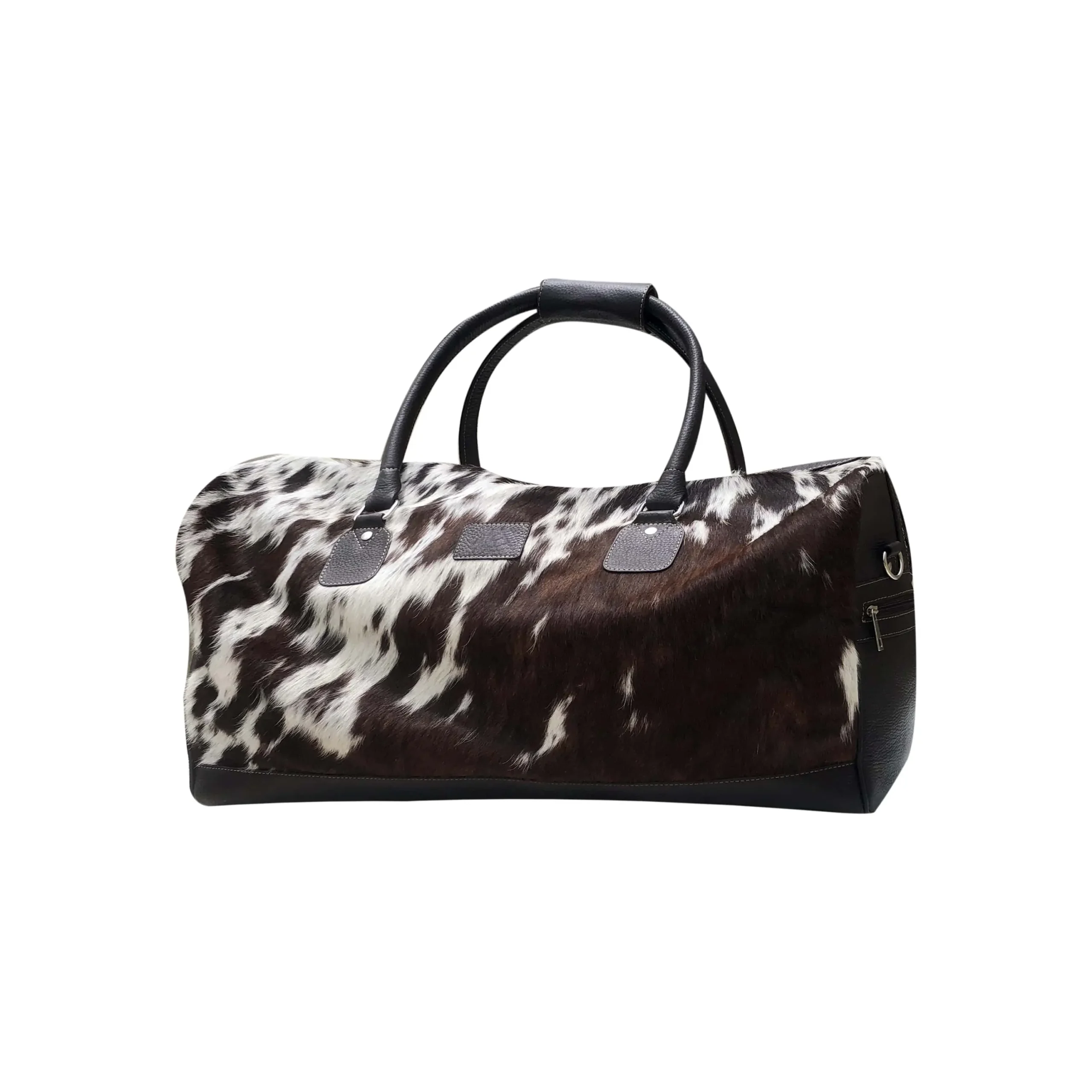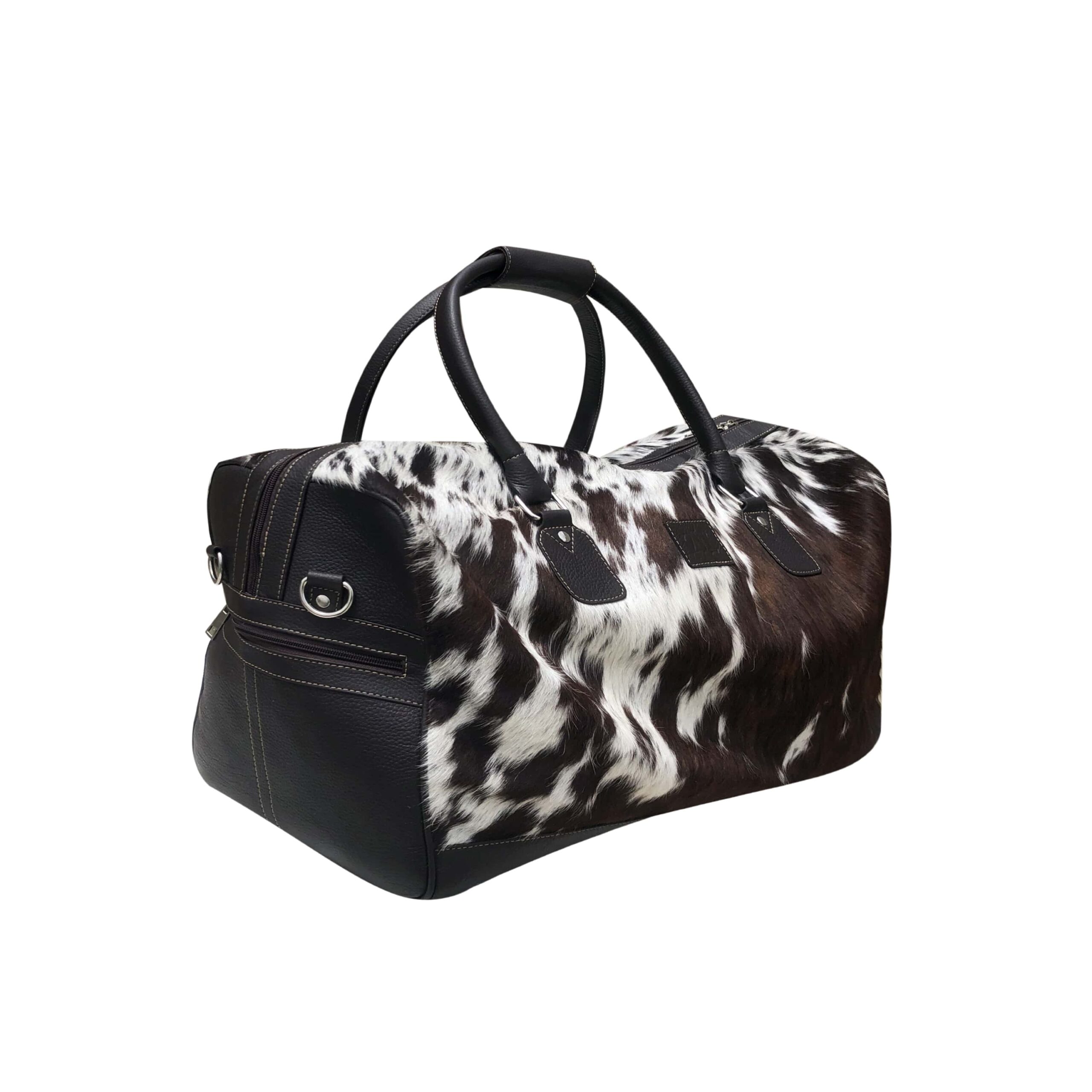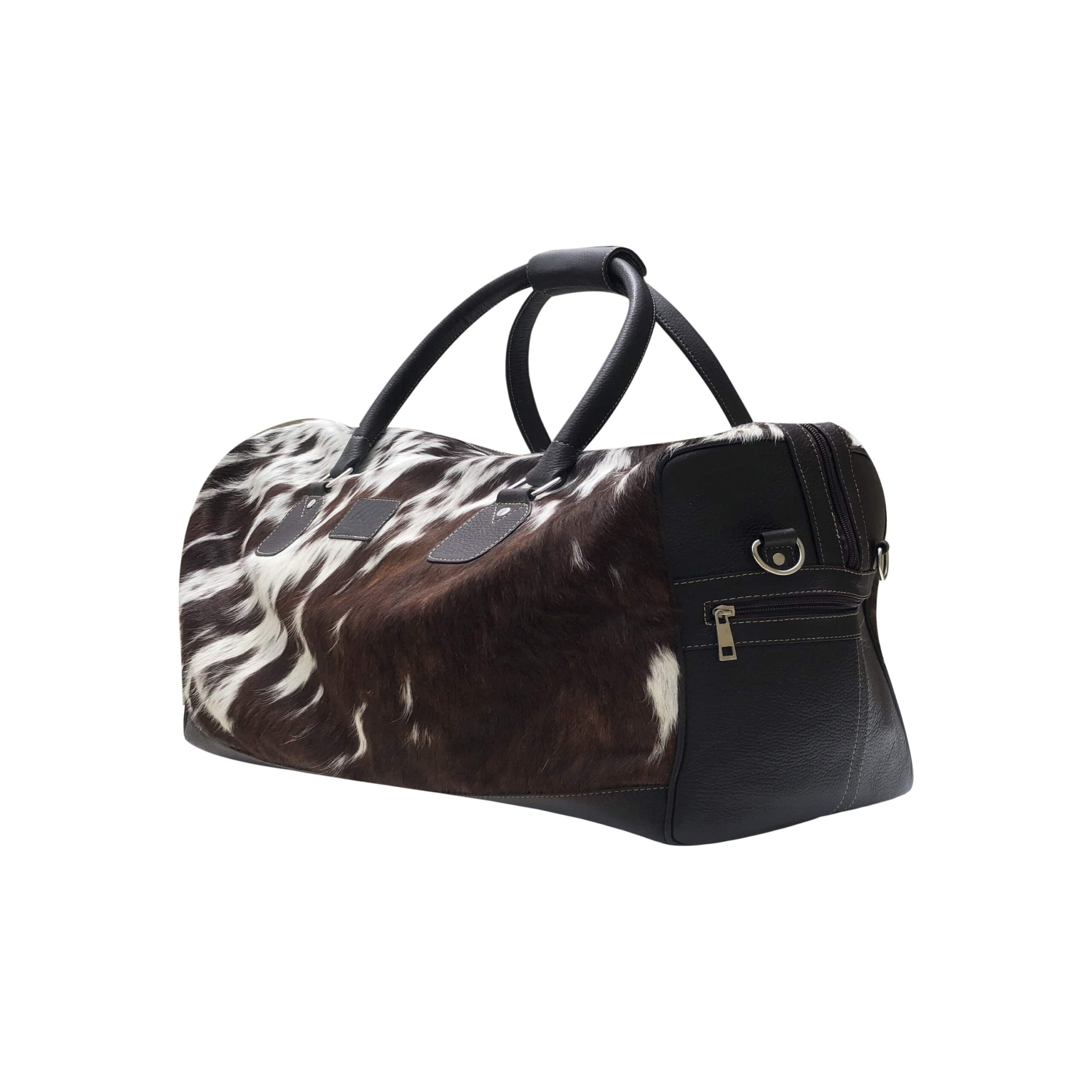 Introducing Classic Cowhide hair Leather duffel. This bag is perfect for any traveler, whether you are travelling for business or pleasure. Our duffel is made from high quality, durable leather and features multiple compartments and pockets to organize all of your belongings. Whether you’re a business traveler or a weekend adventurer, our Leather Duffel will keep you well-organized and looking stylish all at the same time.